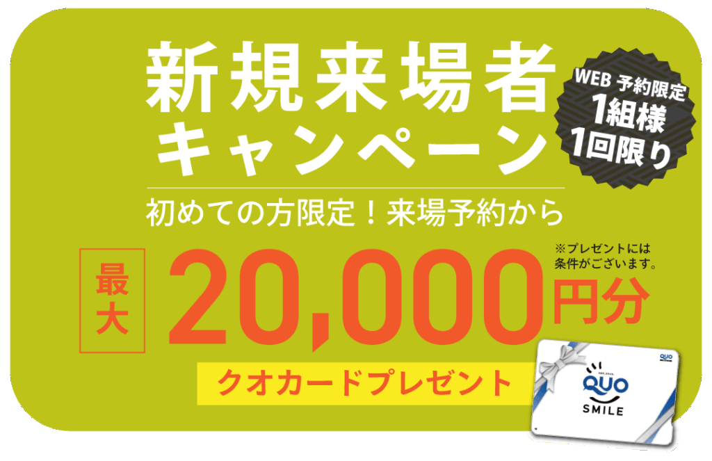 初めてご来場されるお客様限定で、下記の条件を満たして対象となる方へQUOカードを進呈いたします。