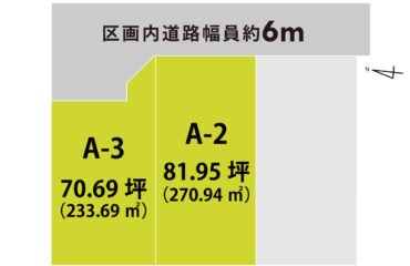 70坪~80坪の大きさで、人気の平屋や大きな庭付きのご計画にもぴったりです。 --------------------- A-1:成約 A-2:942.4万円 A-3:812.9万円