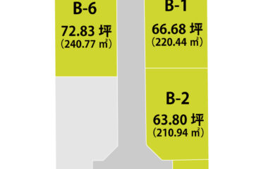 B-1:866.4万円 (商談中) B-2:799.7万円 B-3:714.2万円 B-4:706.7万円 B-5:成約 B-6:979.2万円